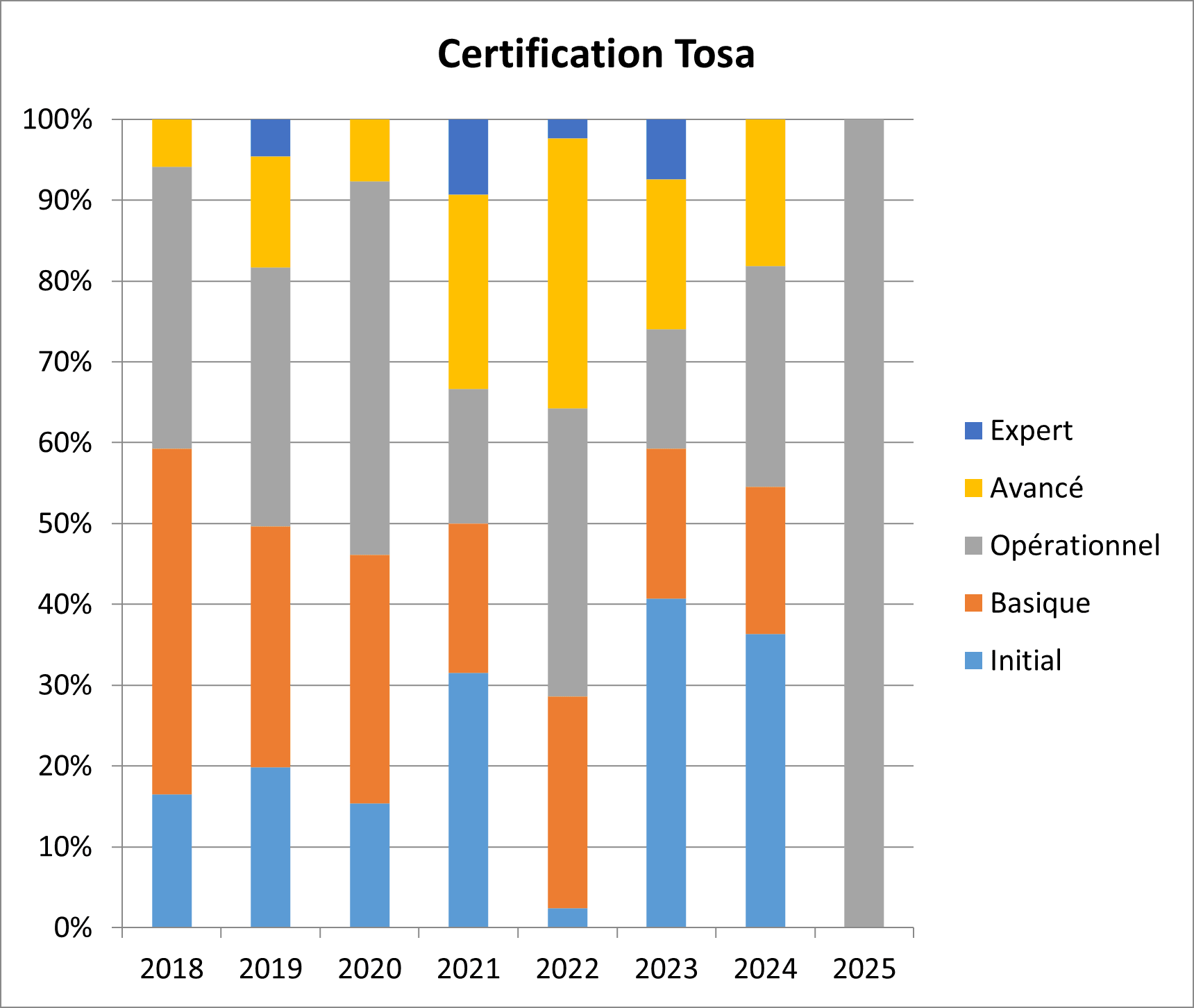 Utilisé et plébiscité par 7 000 entreprises, écoles et organismes de formation à travers le monde, le Tosa est la certification des compétences bureautiques et digitales de référence. Depuis 2018, le Tosa est la certification informatique la plus demandée par les salariés en France.